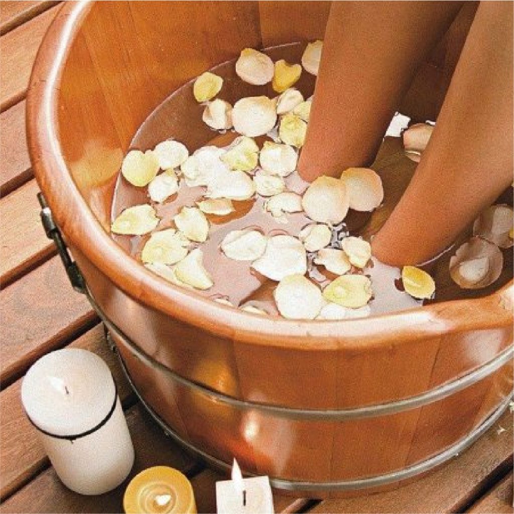 A experiência inicia com uma terapia milenar de purificação, escalda pés em sal rosa dos himalaias e ervas desintoxicantes, seguida de uma massagem podal e craniana, fazendo assim o equilíbrio e a conexão, entre o corpo e a alma!